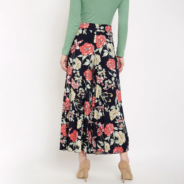 Women Black & Red Floral Printed Flared Palazzos